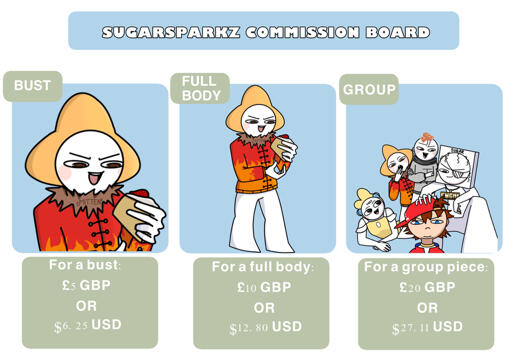 If you like my chibi art style don't be afraid to also commission me!For my regular commissions i will be doing practice commissions to improve my skills.Each commission completion time may differ depending on workload (a month or less) Please be patient!